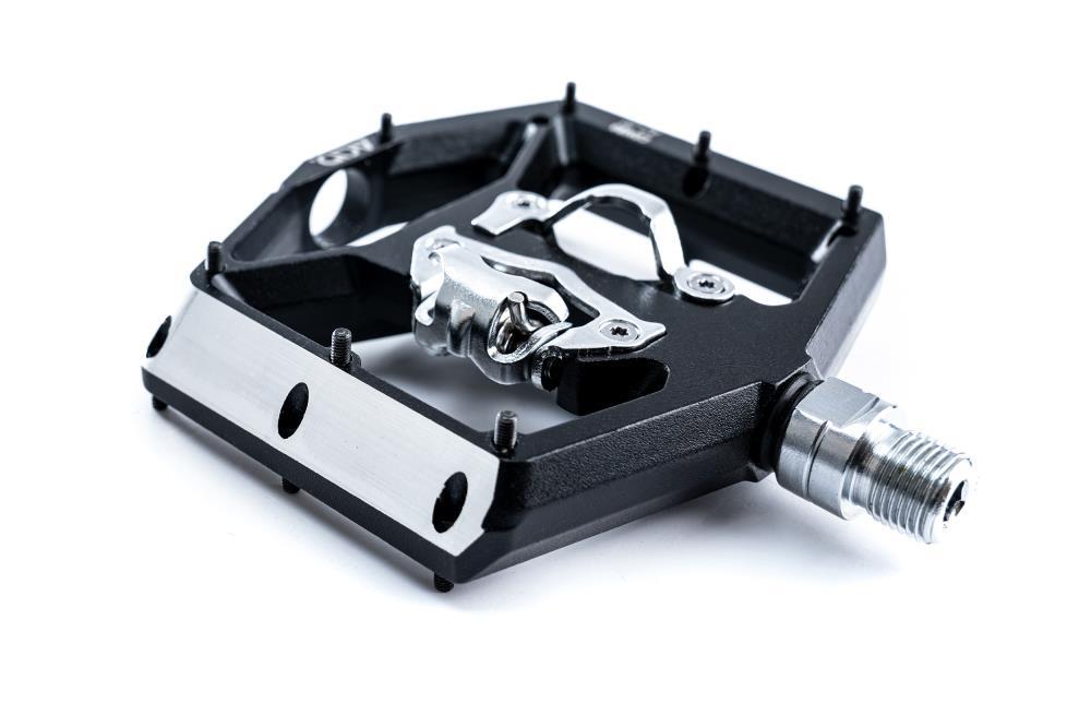 | Features | leichtes Click-Pedal mit beidseitigem Klick-System, SPD-kompatibel, CNC-veredelter Aluminiumkörper und CrMo Achse, angefaste Kanten für erhöhte Bodenfreiheit in Kurven, große Standfläche, extrem flache Bauweise, 16 austauschbare und einstellbare Pins, gedichtete Industrielager |