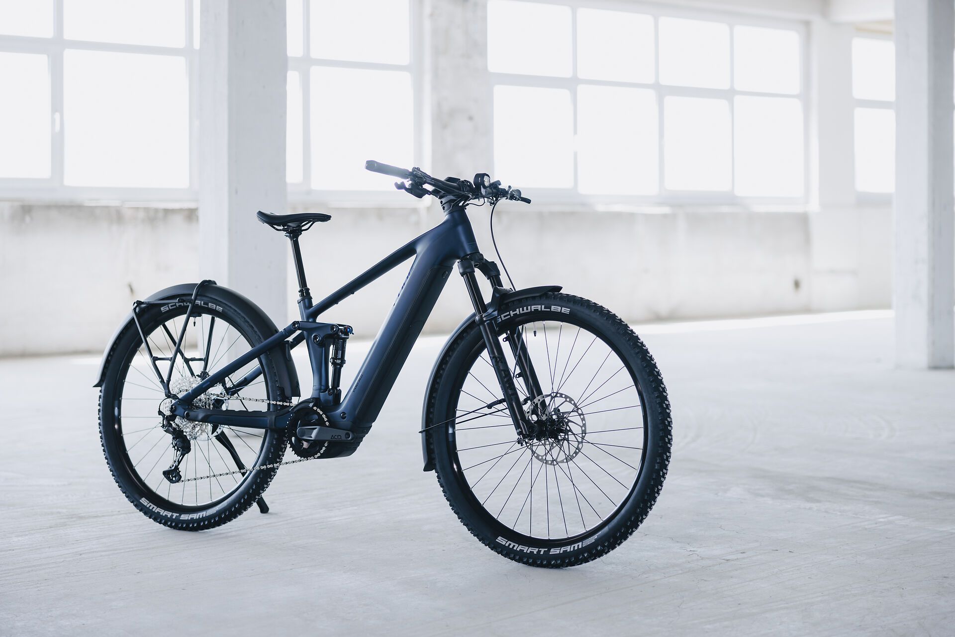 Als „MTB, das auch Alltag kann“ gibt’s z. B. Aim FE mit Schutzblechen, Licht, Träger und Ständer.